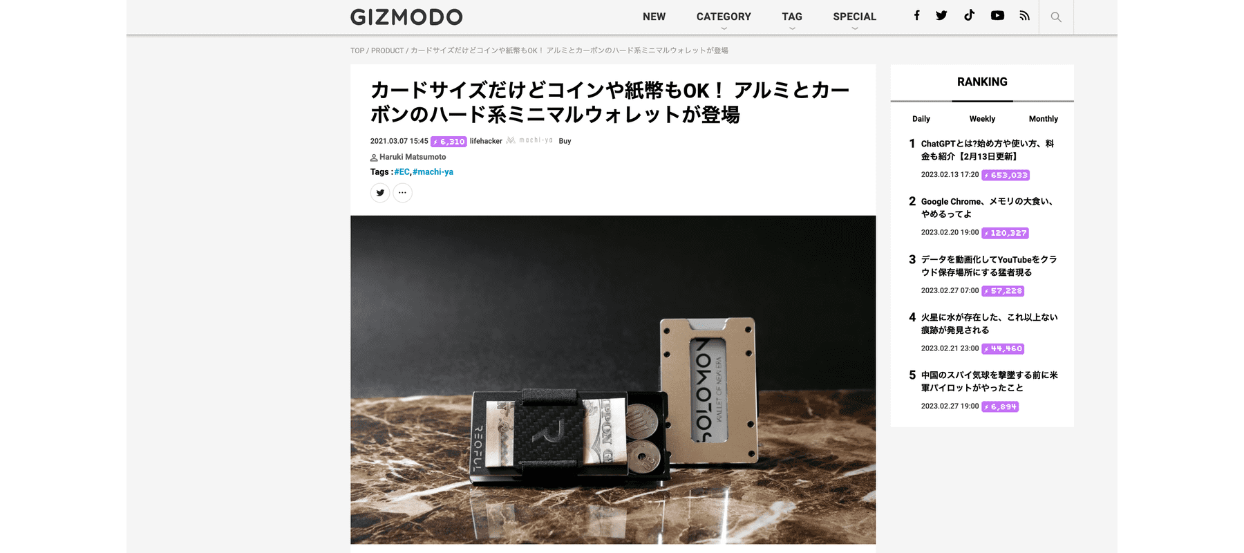 累計1,000万円以上の応援購入や支援を集め、大ヒットしデビューしたカードケースブランドです。
